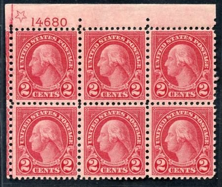 US 579 LH VF PB of 4 with 2 Extra – Extraordinary Centering + Over cut at left for rare coil waste plate, makes this among the finest known – cv $830