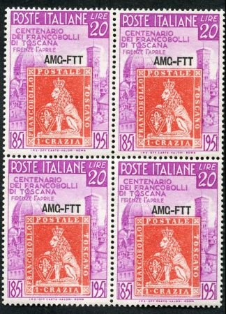 Italy Trieste Zone A 109 (Sa 108) NH VF Block of 4. Broken “8” Plate Variety LR stamp