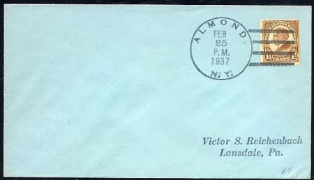US New York, Almond 553 Fancy Cancel Cover Almond, NY Cancel