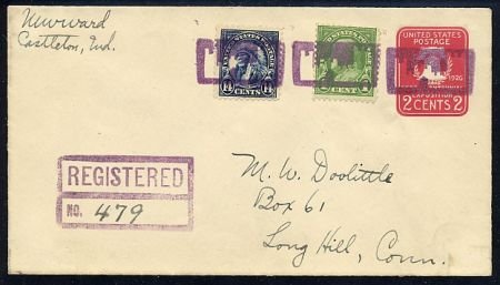 US Indiana, Castleton 1930 (Dec 25) 565, 632, U522 Fancy Cancel Cover Negative Castle in rectangle Fancy Cancel #120 in purple.