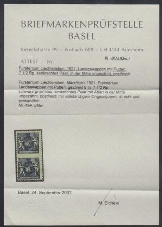 Liechtenstein 58 Variety NH Vertical Pair – Cert
