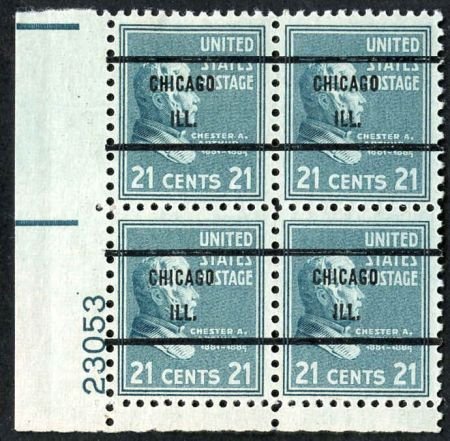 US 826 F-VF/LH Precancel Plate Block #23053, (Durland cv $500.00) Chester A. Arthur
