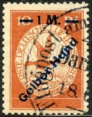 Germany 1912 Mi. lV VF Used 1m on 10pf Gelber Hund Overprint picture for reference