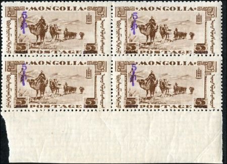 Mongolia 74g F – VF Block NH 5m on 5t camels violet