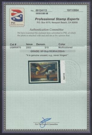 US RW70 Duck Stamp XF – Sup NH PSE Cert Grade 95