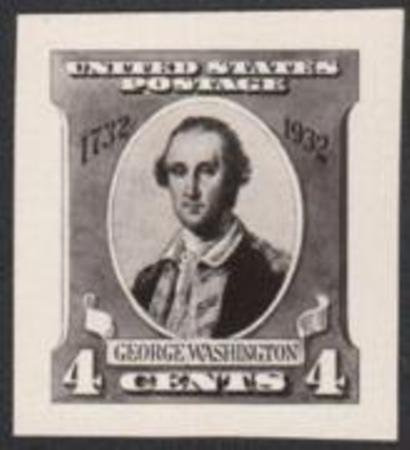 US 709 Photo Essay 4c George Washington Bicentennial, with portrait and other design elements used in used in final design of 712.