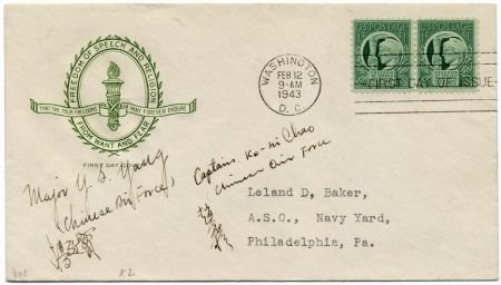 US 908 Autographed Cover, Major Yang, Capt. Ko-Mi Chao