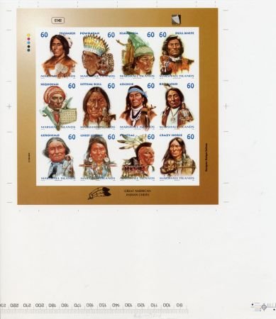 Marshall Is. 699 Imperf M/S of 12, Great Am. Indian Chiefs All photos for reference only. All purchases will have a margin. If you require a specific position, please let us know.