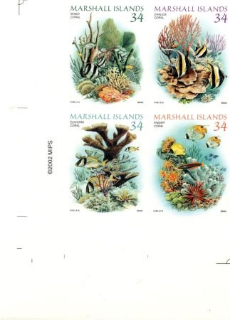 Marshall Is. 797 Imperf, Gardens of the Sea, fish block of 4 (Photo for reference only)