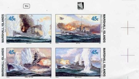 Marshall Is. 242 – 245 Imperf block of 4, Battle of River, WWll