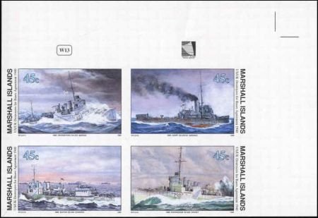 • Marshall Is. 257 - 260 Imperf Block of 4, ships, Destroyers, WWll