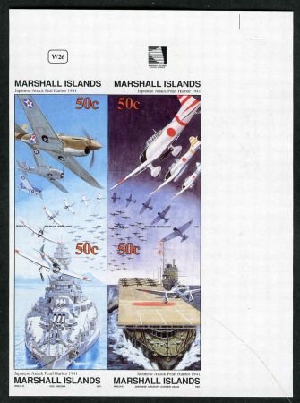 Marshall Is. 288 – 291 Imperf Block, Attack on Pearl Harbor , WWll All photos for reference only. All purchases will have a margin. If you require a specific position, please let us know.