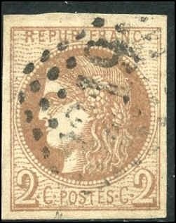 France 39 variety (Yv 40Bc) XF Used 2 cent Deep Chocolate Rare Shade. “Report 2” Calves Cert. rarest Variety (cv €4250.00=$6,000.00)