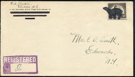 New York, Talcville 623 Fancy Cancel Cover, Polar Bear.The rarest and some of the most intersting U.S. Fancy cancels were designed by R. J. Mechin. These are considered the rarest and most valuable of all the 20th century fancy cancels. They were cut from cork by hand and of the 18 different cancels in existence, we have 14.