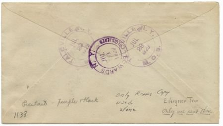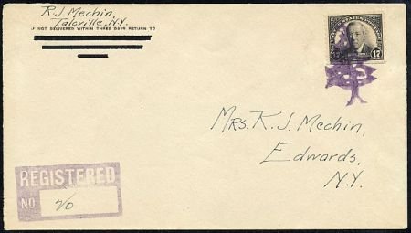 New York, Talcville 623 Fancy Cancel Cover, Tree. The rarest and some of the most intersting U.S. Fancy cancels were designed by R. J. Mechin. These are considered the rarest and most valuable of all the 20th century fancy cancels. They were cut from cork by hand and of the 18 different cancels in existence, we have 14.
