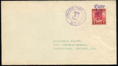 US Illinois, Orlando Park 645 Fancy Cancel Cover, Easter