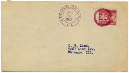 US Illinois, Washington Park 716 Fancy Cancel Cover, Leap Year, “29” in Circle