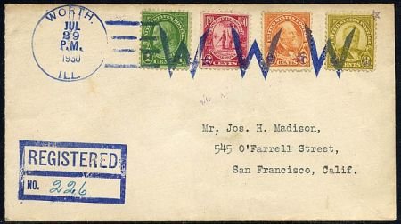 US Illinois, Worth 632, 638, 640, 683 Fancy Cancel Cover, Large W