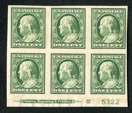 US 383 Washington / Franklin F – VF LH Plate Block VF – XF Bottom Plate Block of 6 with star Plate # 5322