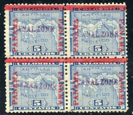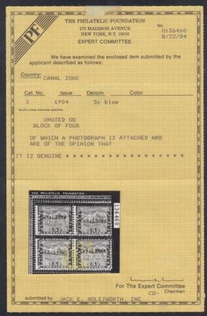 US Possessions – Canal Zone 2 Possessions F – VF Hinged Block of 4 – Disturbed OG, PF Cert cv $1,750