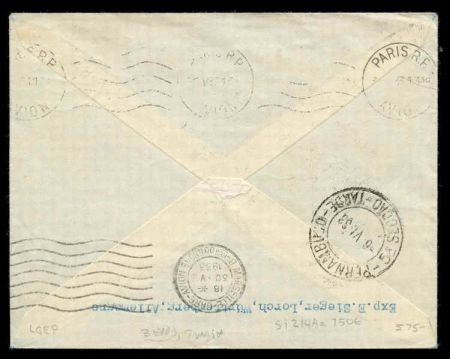 Tunisia 1933 2nd South American Flight sent to Brazil S.214Aa