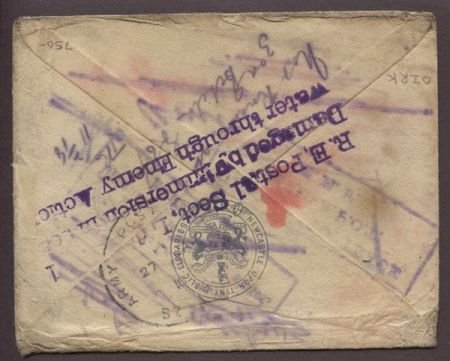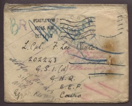 Great Britain 1917 (October 11) to British Officer in Cairo – damaged through enemy action.