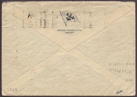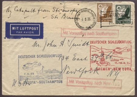 Germany 1935 Double Catapult, Europa & Bremen on Bremen Envelope