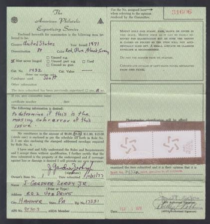 US 1432a Error VF NH Vertical Margin – Transition Pair – Black partially missing caused by foldover – APS Cert cv 975.00