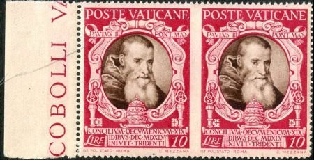 • Vatican 121 Error NH Left Margin Pair Imperf Between