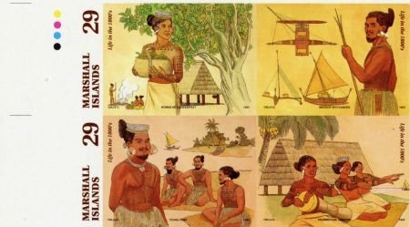 Marshall Is. 572 – 575 Imperf Block of 4 Life in 1800’s, Canoe, Music