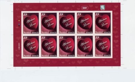 Marshall Is. 875 Imperf M/S of 10, Valentine’s Day, Heart