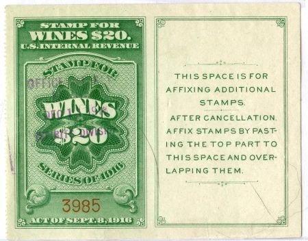 US RE56 Used XF $20 Wine Stamp with Tablet at right