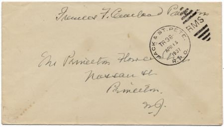 Autograph – Frances F. Cleveland, widow of President Grover Cleveland, 1937 Apr 15 Free Frank cover mailed while traveling. Cover has a rare RPO cancel!
