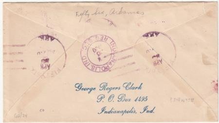 US Fifty-Six, Arkansas 1930 (Apr 25) registered cover with three strikes of “56 and ARK” fancy cancel, #342 in purple.
