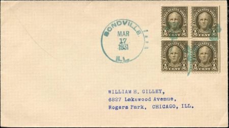 US Illinois, Bondville 551 Fancy Cancel Cover, St. Patrick’s Day, Clover