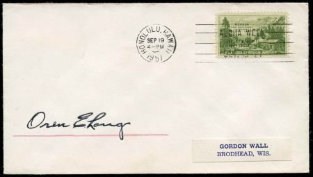 US 999 Uncacheted cover dated 1951 (Sep 19) signed by Oren E. Long, Governor of Hawaii Territory 1951-53.
