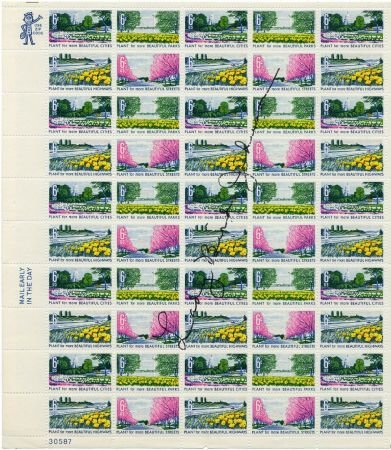US 1365 – 1368 Autographed Sheet, Lady Bird Johnson