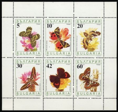 Bulgaria 3556a M/S of 6 NH Butterflies