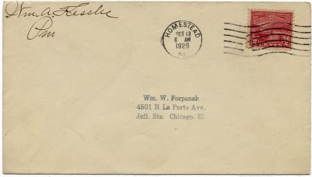 1929 US 681 FDC Signed by Homesead, PA Postmaster William Kessler, uncahceted cover.