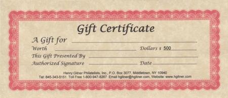 500.00 Gift Certificate – Other Amounts Available!