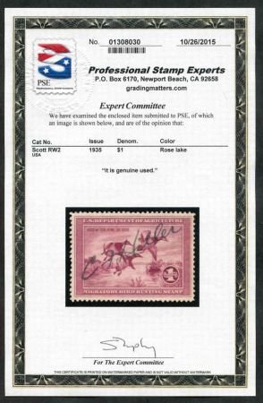 US RW2 Duck Stamp XF Used with PSE Cert cv 1800.00++