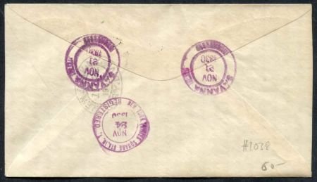 US Savanna, Ilinois 1930 (Nov 21) Five strikes of fancy cancel solid “S” , number 1038, on registered cover with Scott 410, 655 block of 4 and 657 block of 4.