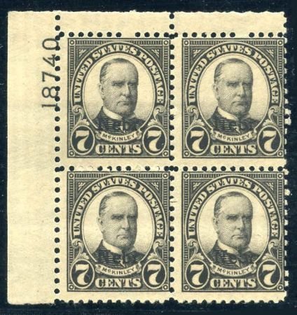 US 665 Ave – F+ NH Plate Block 18740 UL cv $725