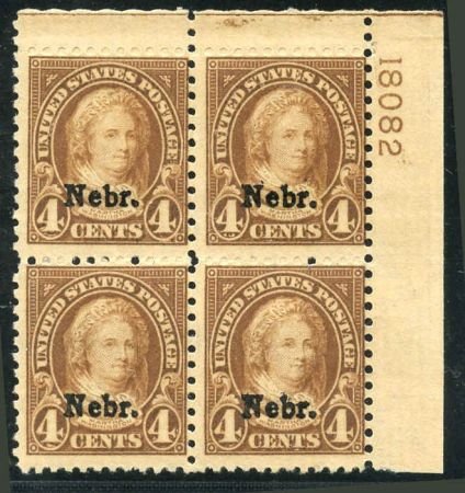 US 673 Ave – F NH Nebraska Overprint Plate Block 18082 UR cv $425