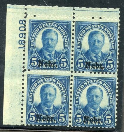 US 674 JF Mint NH Nebraska Overprint Plate Block 18908 UL cv $425