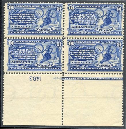 US E6 Special Delivery JF NH cv 2100.00+ Block of 4 with plate number and imprint