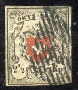 Switzerland 1850 Rayons Sc 1 Zum 13(1) Used VF Small thin, black grid cancel – lovely sc cv 1500.00 sfr 2300.00