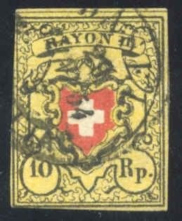Switzerland 1850 Rayons 8b Used F Orange Yellow 3 Margin cv sc 250.00