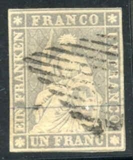 Switzerland 1855 Sitting Helvetia Sc 30 Zum 27c F 2 1/2 frame lines – small margins – black silk thread cv sc $1000.00 cv sfr 1300.00
