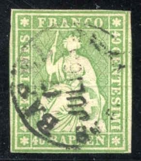 Switzerland 1857 – 1862 Sitting Helvetia Sc 40 Zum 26G Used XF – Superb